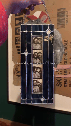 ❤️Each piece is a handcrafted celebration of stained glass. I select and cut each geometric piece of glass, wrap it in copper foil, and solder it by hand. This frame is designed to make your everyday photos glow with light and color.